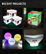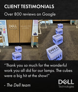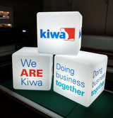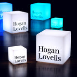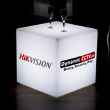 Smaller cubes work great as custom table centrepieces, while larger lamps can be used as branded stools, seats and tables (they are strong enough to sit on).